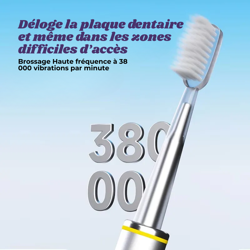 Avec ses 38 000 vibrations par minute, cette brosse électrique offre un nettoyage 12 fois plus efficace qu’une brosse à dents manuelle. Sa haute fréquence permet de déloger la plaque dentaire, même dans les zones difficiles d’accès, et d’atteindre les interstices entre les dents grâce à sa technique interdentaire de pénétration. Résultat : une bouche plus saine, des dents plus propres et une haleine plus fraîche dès la première utilisation.