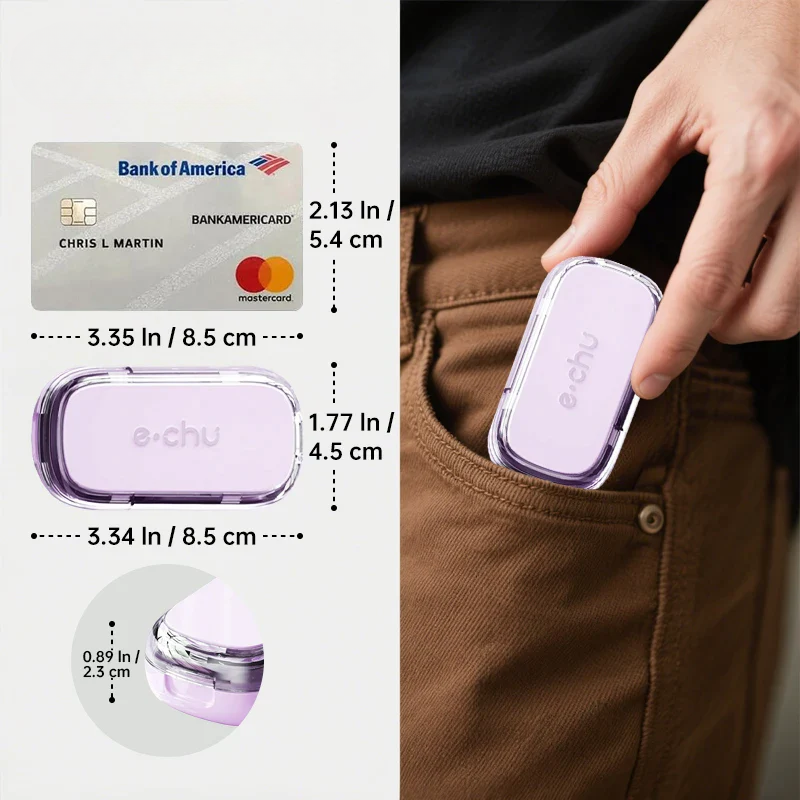 Conçu pour vous accompagner partout, ce coupe-pilule est ultra compact et portable. Glissez-le facilement dans votre sac à main, votre trousse de toilette ou votre valise : il vous suivra dans tous vos déplacements. Son design hermétique et étanche protège vos comprimés de la poussière et de l’humidité, garantissant une conservation optimale de vos médicaments.