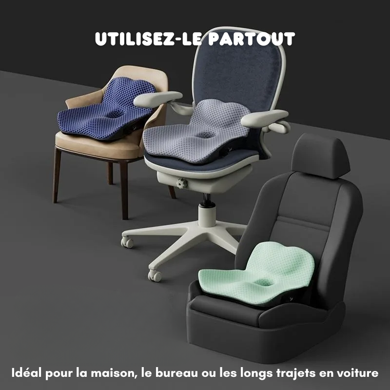 Le trou central permet un soulagement précis des zones sensibles, idéal pour ceux souffrant de douleurs au coccyx ou d’hémorroïdes. Que ce soit pour travailler, conduire ou vous détendre, ce coussin s'adapte à toutes les situations et chaises.