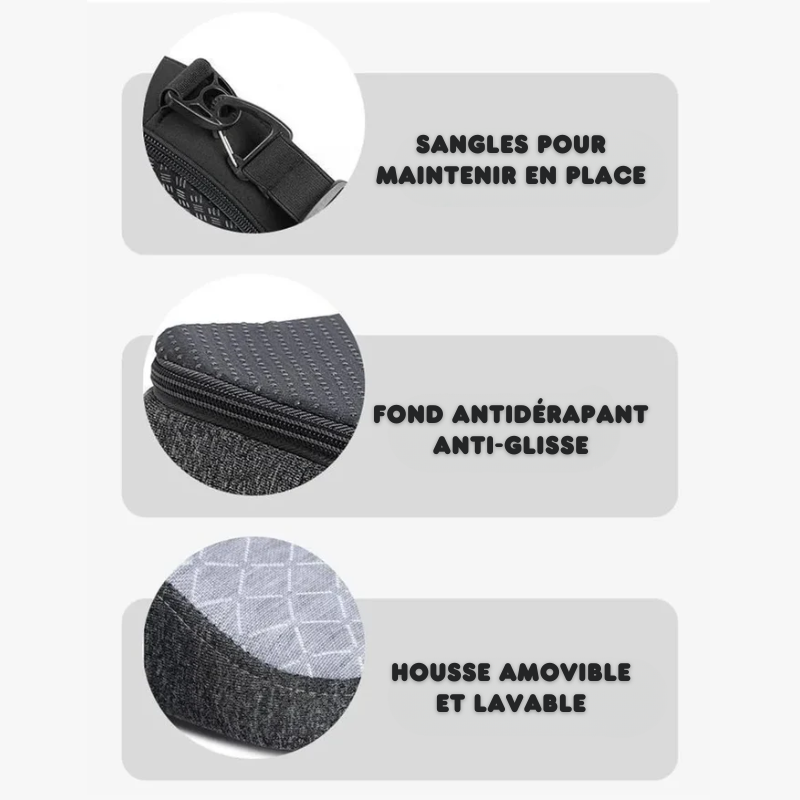 La housse amovible et lavable permet un entretien facile pour une hygiène irréprochable. Le fond antidérapant maintient le coussin fermement en place, peu importe la surface sur laquelle il est posé. Compact et léger, il se transporte aisément, ce qui en fait un compagnon idéal pour la maison, le bureau ou les longs trajets en voiture.