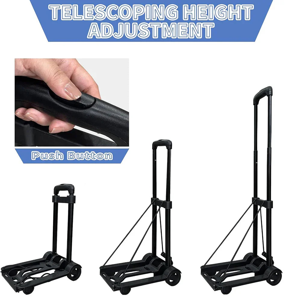 Ce diable pliable est conçu pour être **compact**, permettant un rangement facile dans les espaces restreints tels que les coffres de voiture ou les placards. Sa **portabilité** est idéale pour les voyages ou le transport de courses.