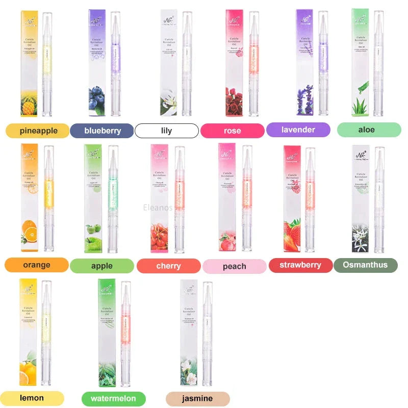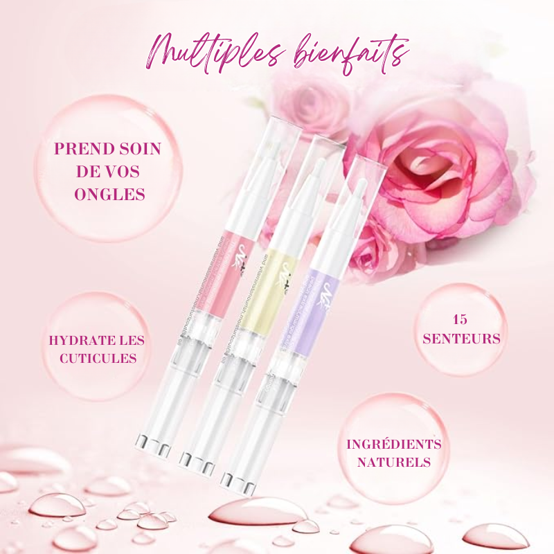 Enrichis en vitamines et parfumés avec des senteurs fruitées etc florales comme l’ananas, la pêche, l’orange, ou des fleurs telles que la lavande, le jasmin et bien d'autres, ils apportent des bienfaits ciblés pour renforcer les ongles et adoucir les cuticules. Leur formule est non toxique et adaptée à un usage fréquent sans agresser vos ongles.