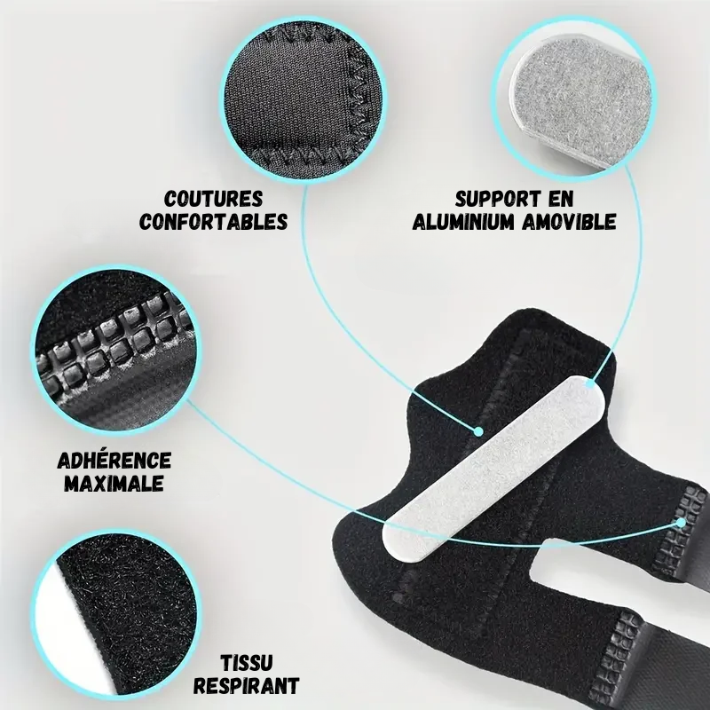 Chaque attelle est dotée d'une structure solide mais flexible, permettant un soutien efficace tout en étant suffisamment malléable pour ne pas gêner les activités quotidiennes. Leur design compact et léger facilite leur utilisation à la maison, au travail, au sport ou en déplacement.