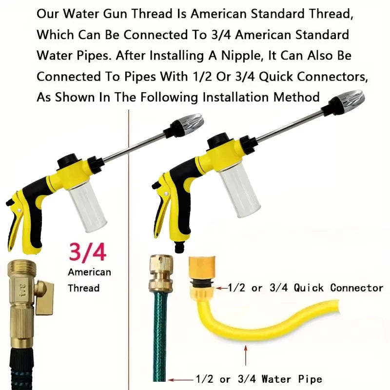 Avec ce pistolet pulvérisateur haute pression, dites adieu aux tâches tenaces ! Grâce à sa conception innovante et son réservoir à savon intégré, il vous permet de nettoyer chaque recoin de votre jardin en un clin d'œil. 🌟 Que ce soit pour laver votre voiture, votre terrasse ou arroser vos plantes, ce pistolet est l'outil indispensable à garder sous la main.