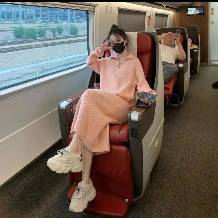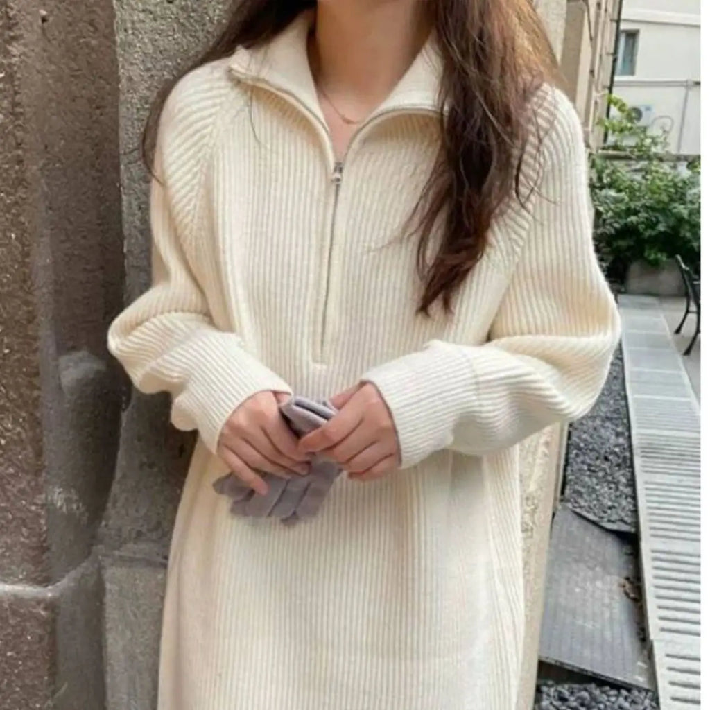 Robe Pull en Tricot Côtelé Ample à Col Cheminé à Zip : L’élégance et le confort réunis 👗